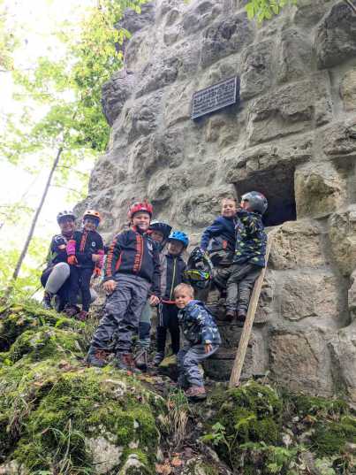 Danach teilte sich die Gruppe erneut: Die älteren Sportler begaben sich auf eine anspruchsvolle Trailtour zum Sternberg, während die Jüngeren auf Entdeckungsfahrt zur Ruine Blankenhorn gingen – ein Abenteuer mit historischem Flair.